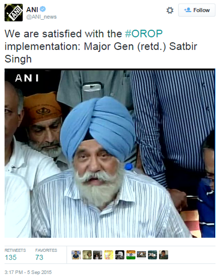 Many of us are very sad that when justice is being done for the first time, our Armed Forces veterans are being misled by “politically motivated veterans”. Nobody spread the “sense of injustice” among Armed Forces for 40 years. Some people, for their political motivations, are doing irreparable damage to the apolitical ethos of Indian Armed Forces. The fabric of civil-military relations in India has been bruised with this overt politicization of OROP.