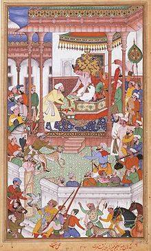 Abdul Rahim Khan-I-Khana being received by Akbar