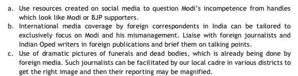 A segment of the Toolkit that questions PM CARES reads, “Modi has created an opaque private trust that is collecting money for unknown purposes, and we also don’t know if the money has been spent or not. The entire ecosystem mobilized itself (including former civil servants) to seed doubts about its working. Ventilators sent through the PM CARES fund in Punjab and Chhattisgarh were purposely lying unused to build a narrative that they are defective. Mobilize friendly RTI activists to file multiple RTIs on every aspect of PM CARES and every decision that is taken through it.