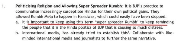 An entire section of the Toolkit is directed towards branding Kumbh Mela as “super spreader Kumbh,” portraying it as ‘political power in the name of religion.’ There are no surprises that it also directs to remain silent of Eid gatherings and address it as ‘happy social gathering of families and communities.’ Can you imagine how communally charged and evil these folks are?